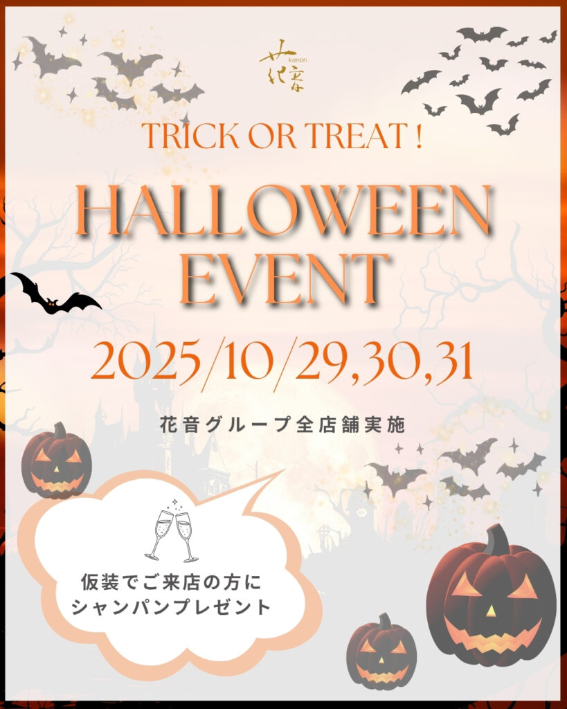 期間中、仮装でご来店いただいたお客様に「シャンパン」をプレゼントいたします🥂✨